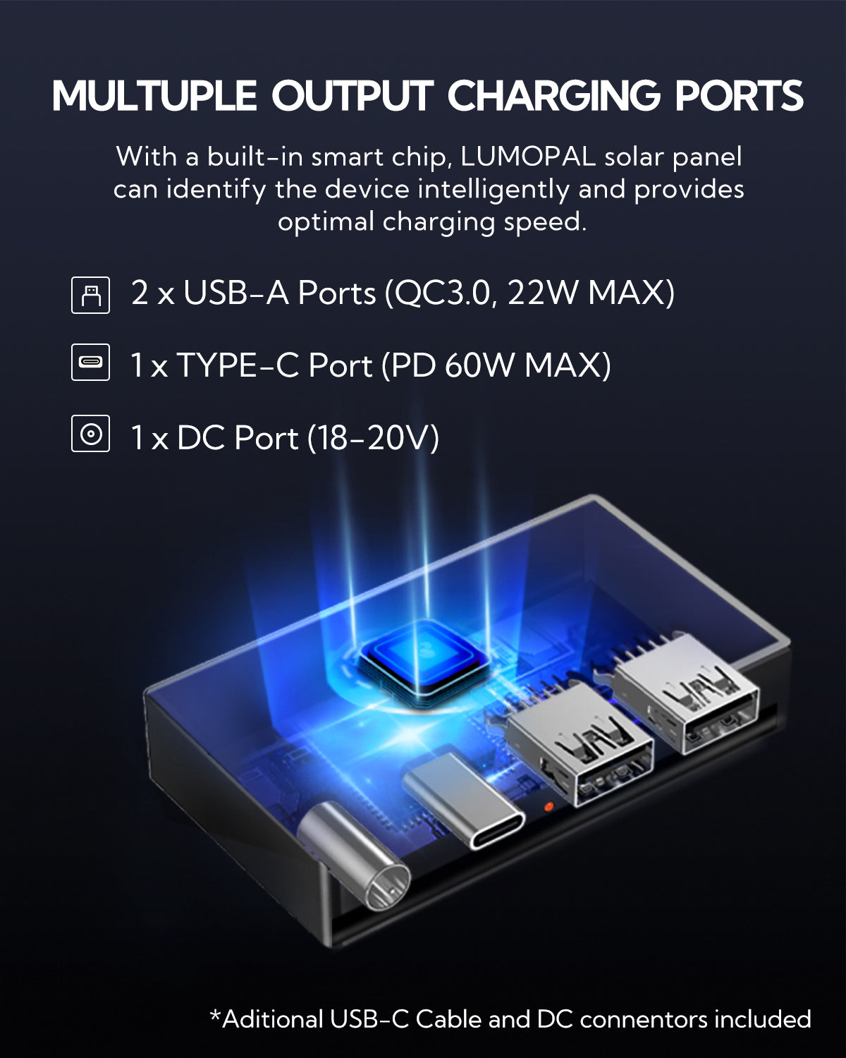 LUMOPAL 60W Foldable Portable Waterproof Solar Panel - Gray